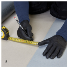 Apply the QuickLay double sided tape around the perimeter of the room and at any doorways. 25mm away from the edge of the room.