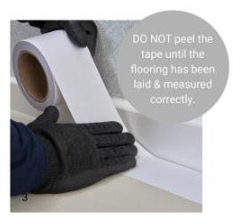The double-sided QuickLay tape is fitted around the perimeter of the room, underneath all seams and doorways securing the flooring in place.